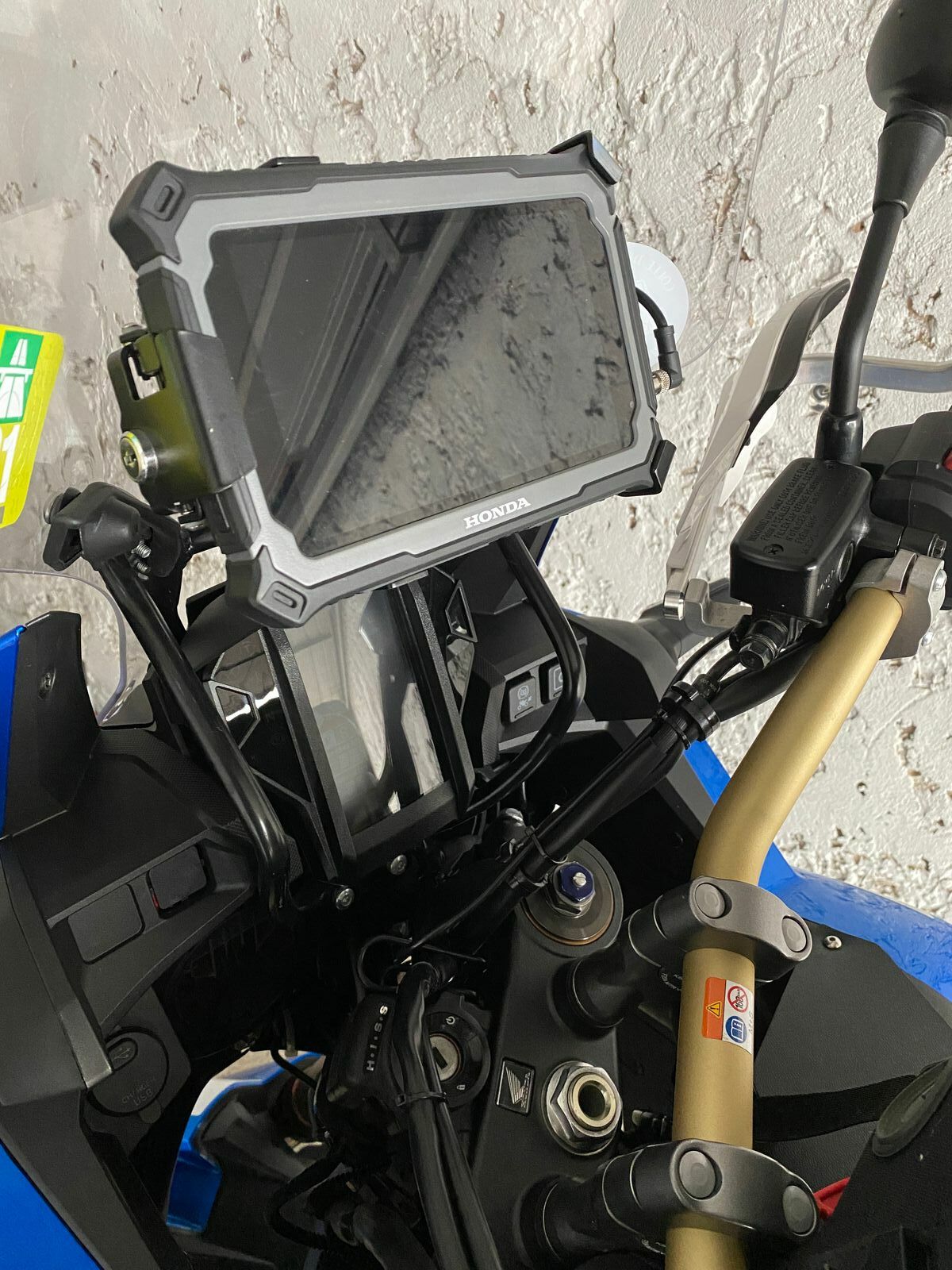 Das CIPpad mit Halter ist schon schwer, deshalb habe ich bei meiner SD06 die Cockpitverstärkung aus Schweden montiert. Dazu noch die Navihalterung von Touratech, damit steht das Tablet genau an der richtigen Position.