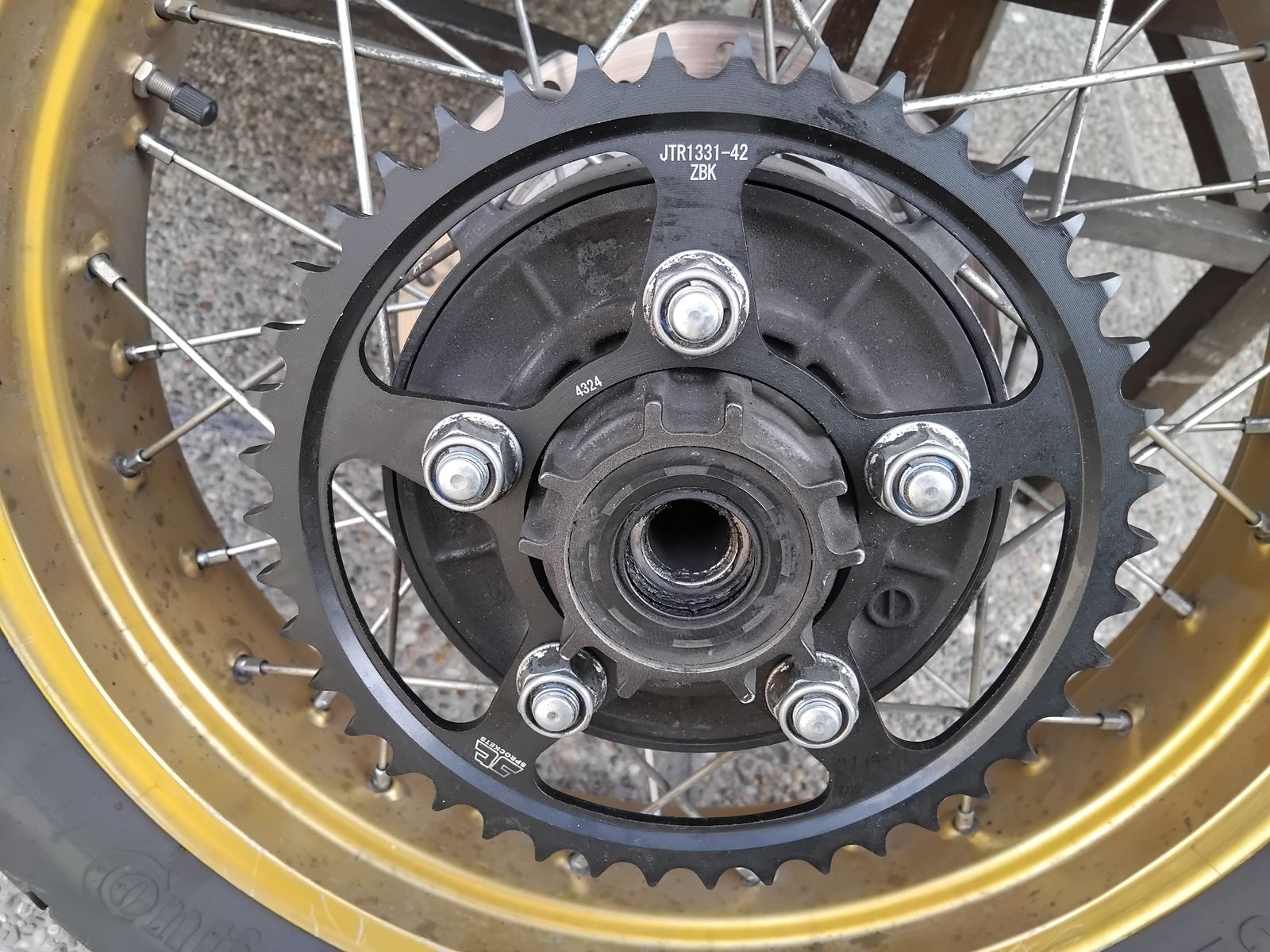 Kette von DID und Kettenrad von JT . Auch das Ritzel ist von JT und sieht optisch genauso aus wie