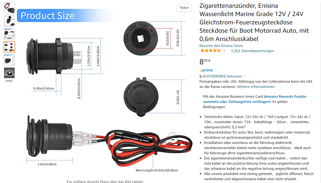 Die Sachen sind angekommen und ich bin sehr zufrieden mit der Lösung. Der Sender fügt sich meiner Meinung nach optisch perfekt in das Gesamtbild mit ein. Der Einbau war sogar etwas einfacher als gedacht. Das Gewinde von der Steckdose ist von der Größe so, dass ich sie einfach von oben in das Loch schrauben konnte, und ich auf den gegen ring verzichten konnte. Elektrisch angeschlossen habe ich die Dose nicht, da sie nur als Halter für den Sender gedacht ist. Schön an dieser Lösung finde ich auch, dass der Sender relativ gut geschützt ist. Sollte es doch einmal sein, dass es stark regnet oder die AT mal im Regen steht, kann man den Sender einfach und schnell rausziehen und mitnehmen. Anbei hab ich mal ein paar Bilder gemacht von den verbauten Sachen.