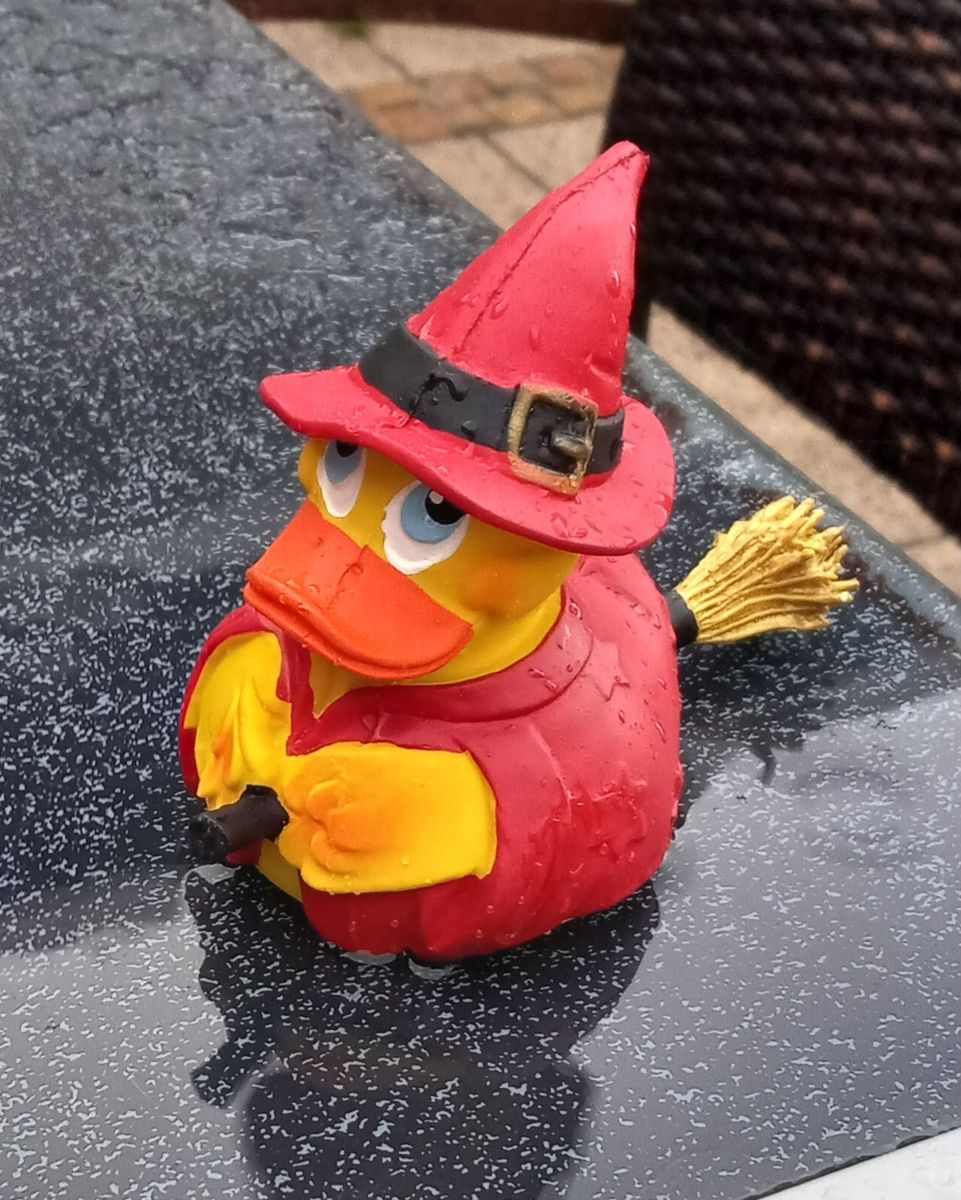 Ich bin die Weinhilde, seit 1. Mai Enten-Weinhex von Oberwesel am Mittelrhein.