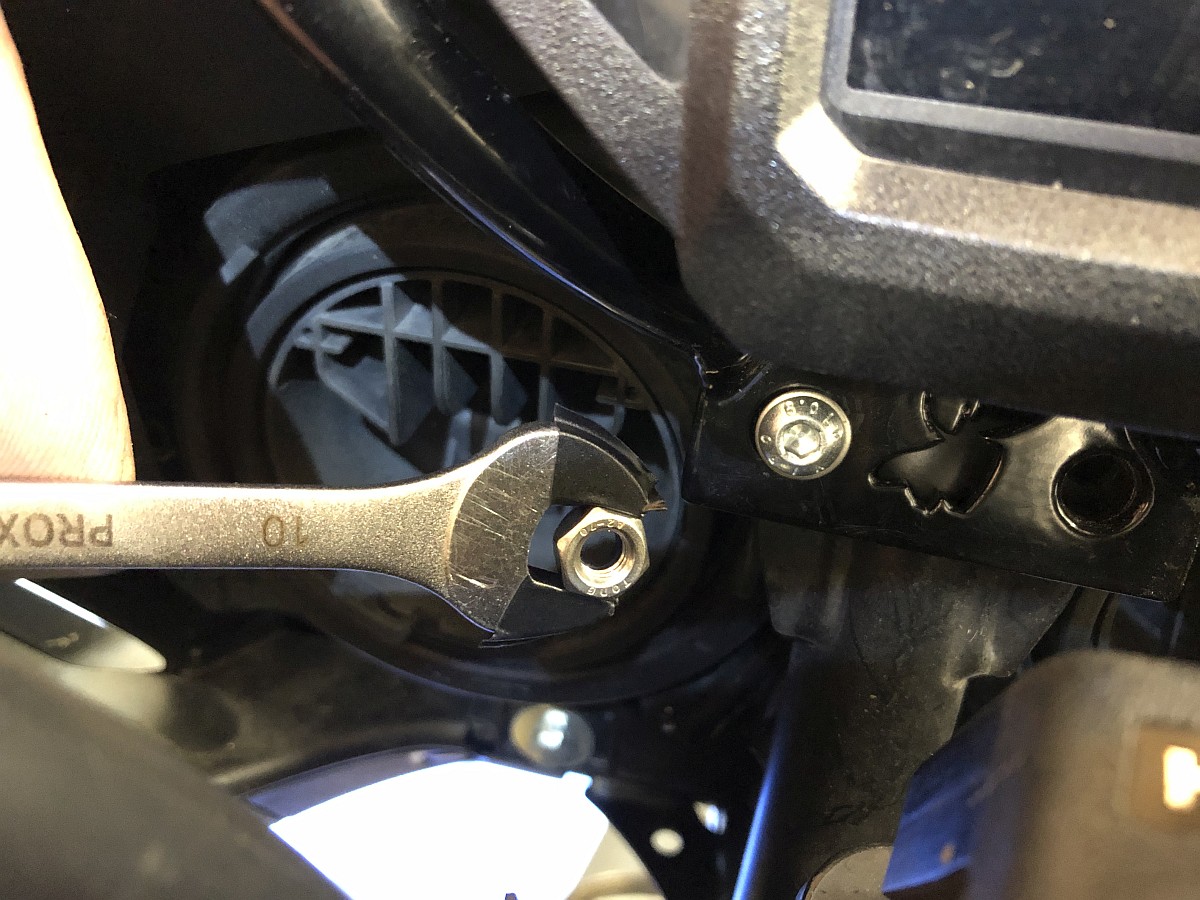 Und dann Festziehen. Dazu habe ich eine 1/4 Zoll Ratsche verwendet. Und eine biegsame Verlängerung.