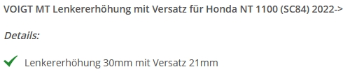 Ich habe die Versatzerhöhung von Voigt montiert ( 30 mm / 21 mm ).