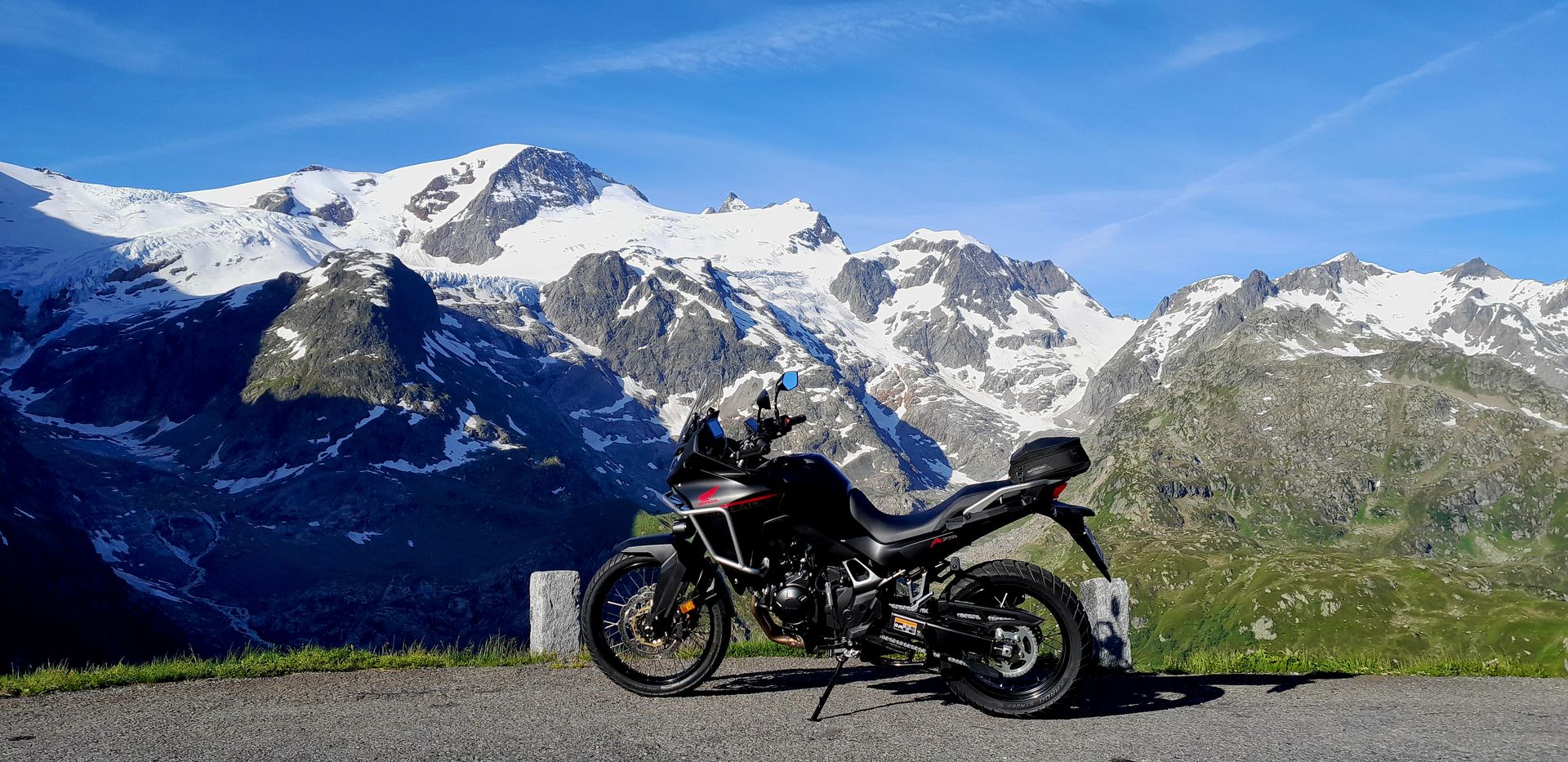 Ich habe meine Transalp gestern Abend erhalten und bin heute den Reifen und das Motorrad während 485 km über den Susten-, Grimsel-,