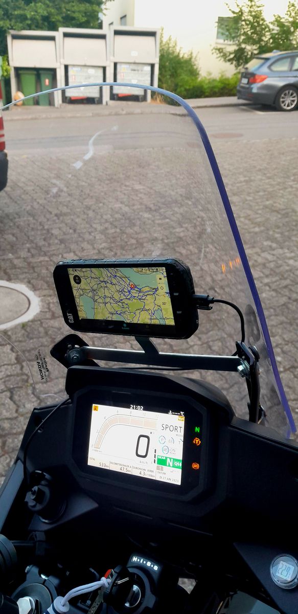 Ich habe bemerkt, als ich zuerst bei der Transalp das Navi über dem Bildschirm platzierte,
