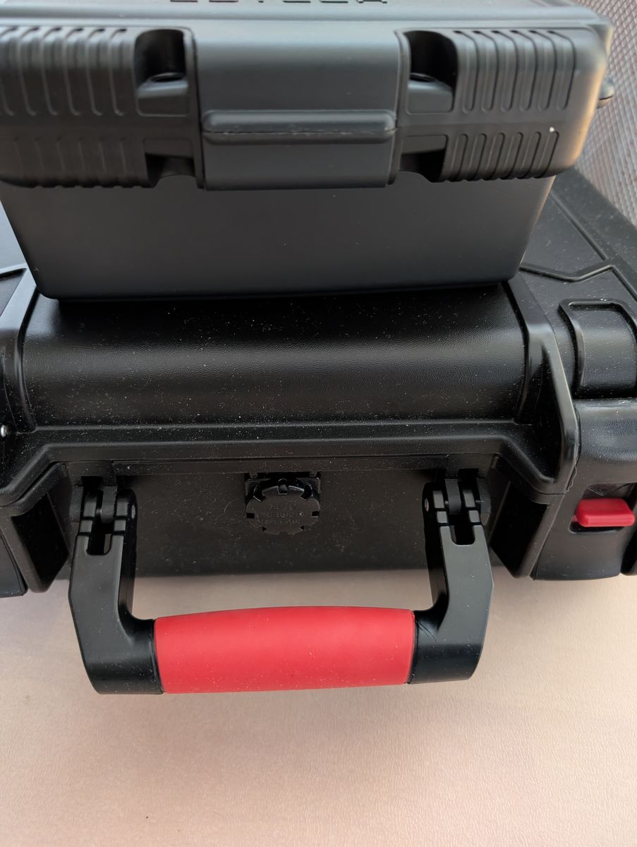Nun soll eine zweite Box mit irgendeinem System auf der bereits fest installierten Box geklickt/geschoben/eingerastet werden, damit sie für die Fahrt fest verbunden ist.