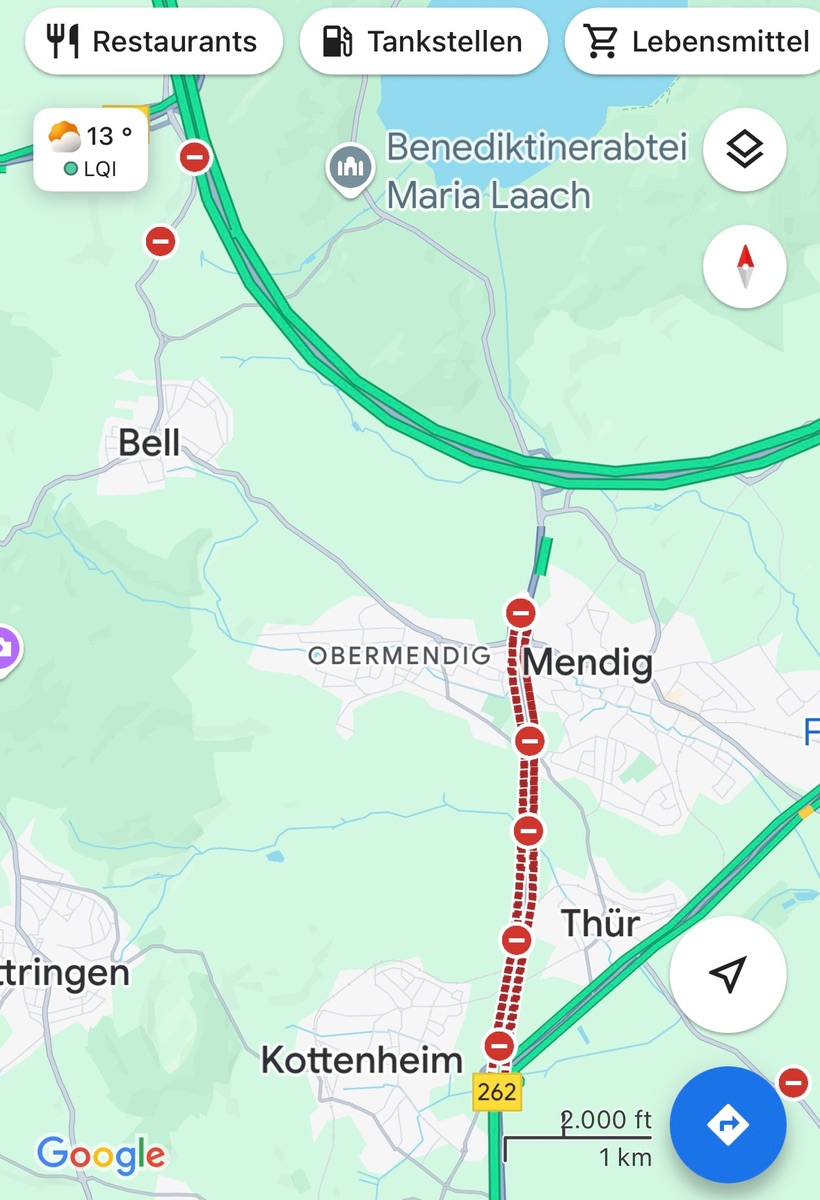 Bei der Routenplanung mit Calimoto sollen diese Sperrungen angezeigt werden, leider Fehlanzeige.