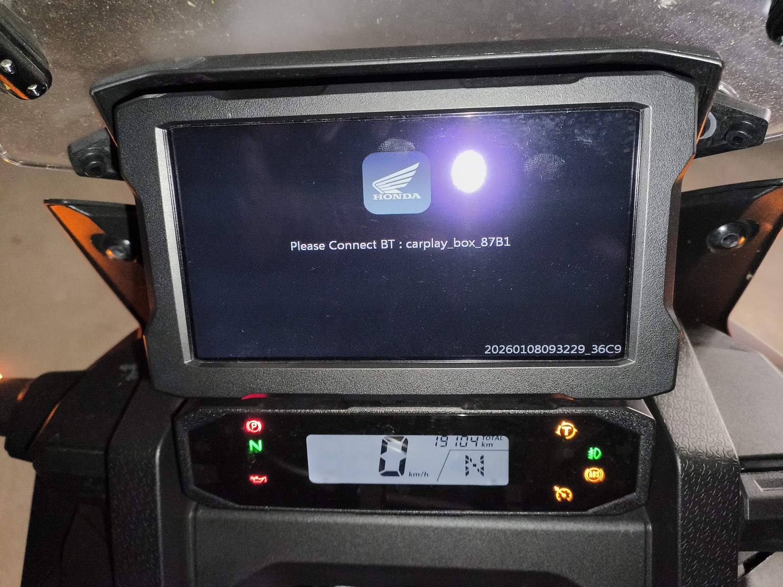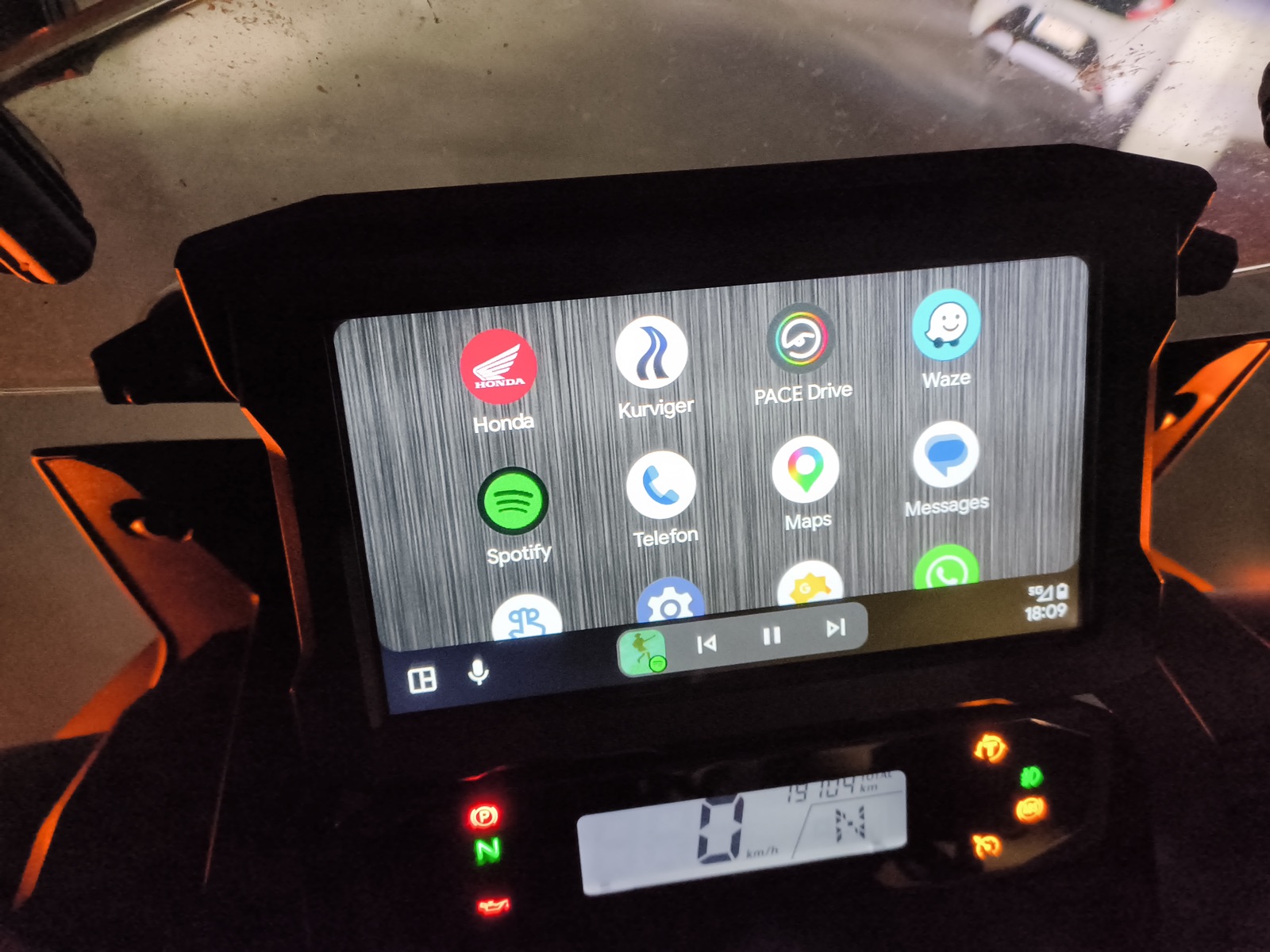 Der Stick ist sowohl für Apple CarPlay als auch für Android Auto geeignet, aber wenn man ihn in die Honda steckt und die Zündung an macht, hält die Honda das Ding zunächst einmal für ein iPhone - schließlich erkennt die Honda erst den Stick, bevor sie erkennen kann, was da für ein Smartphone mit verbunden ist. Und wir erinnern uns: Als die CRF1100 entwickelt wurde, konnte sie nur CarPlay, Android Auto kam später. Ich will es nicht beschwören, aber ich glaube, dass Android Auto noch nicht einmal im Handbuch erwähnt wird.