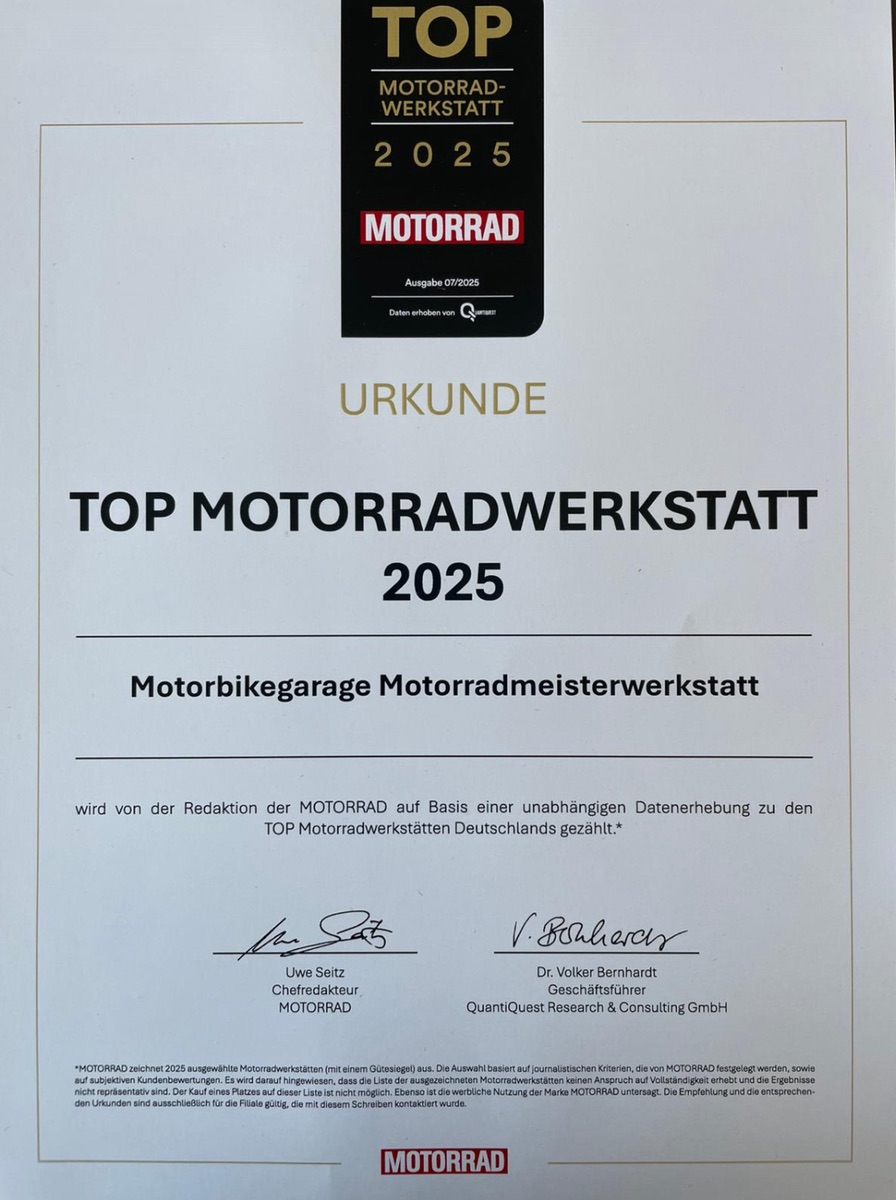 Wie gewohnt toller Service. Eist nicht umsonst ausgezeichnet von der Redaktion der MOTORRAD zu einer der Top Motorradwerkstätten 2025.