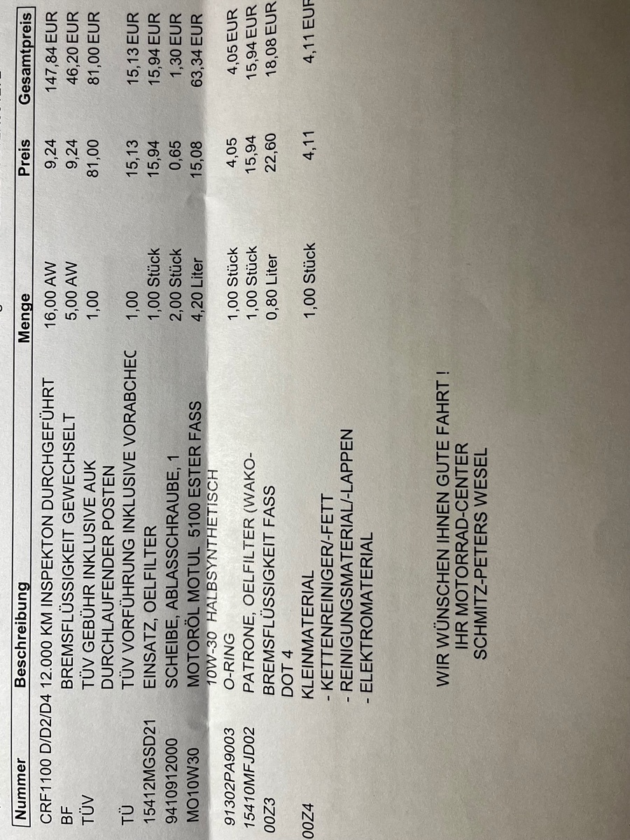 Bremsflüssigkeit haben sie gefragt ob ich das möchte - natürlich, da es nach zwei Jahren empfohlen wird.
