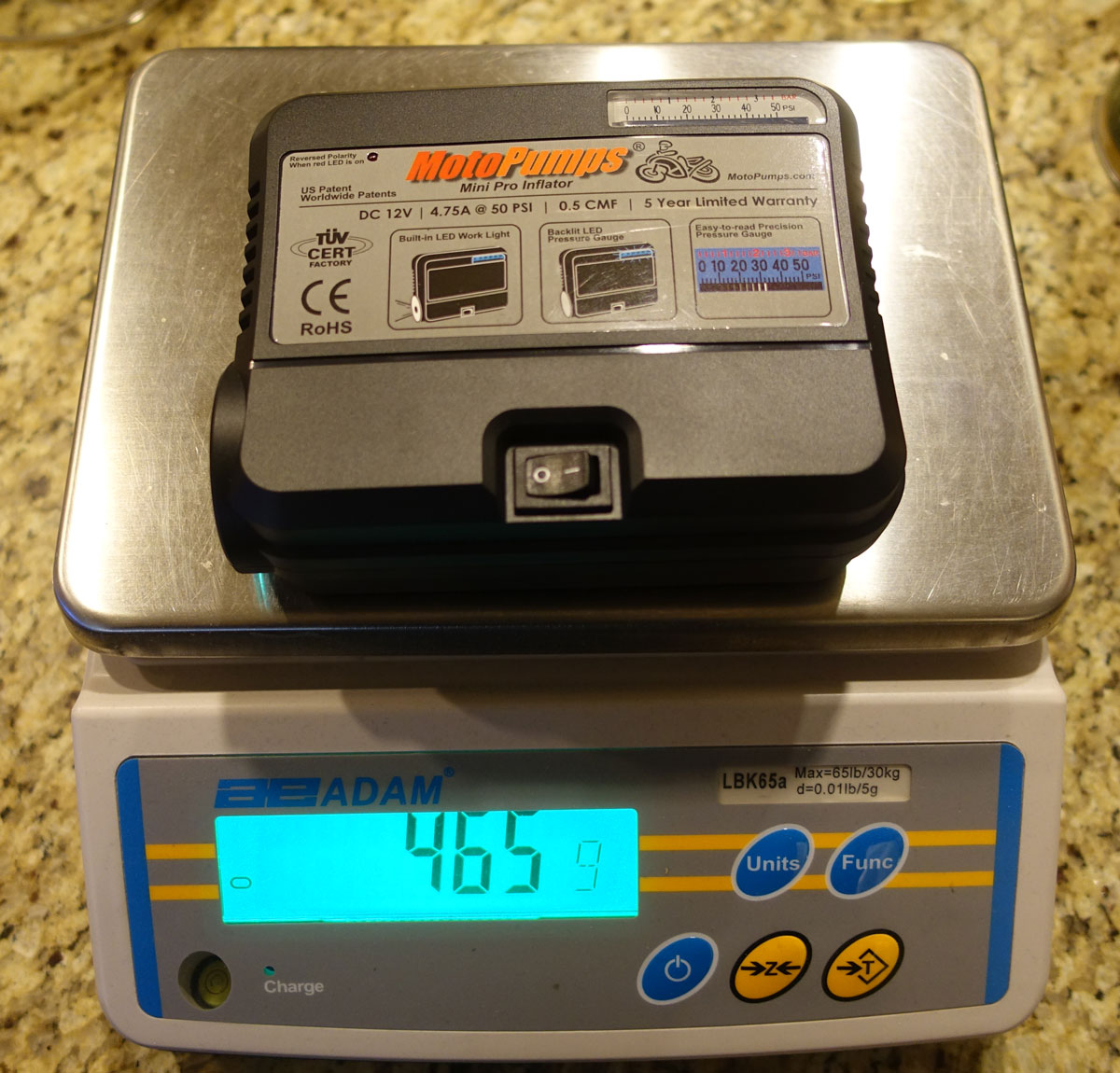 Also 1.3Kg wuerde ich nicht gerne im Gepaeck dabei haben. Ich habe mal meine Pumpe auf die Wage gestellt (siehe Foto). Die ist deutlich kleiner als so ein Autokompressor. Darueber wie lange so eine Pumpe am Stueck laufen darf muss man sich bei einem so kleinem Motorradschlauch aber wohl kaum Gedanken machen.
