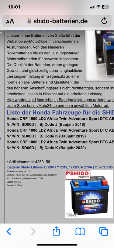 Würde diese Batterie für meine crf 1000 crf dct sd06 ausreichen und kompatibel sein ???