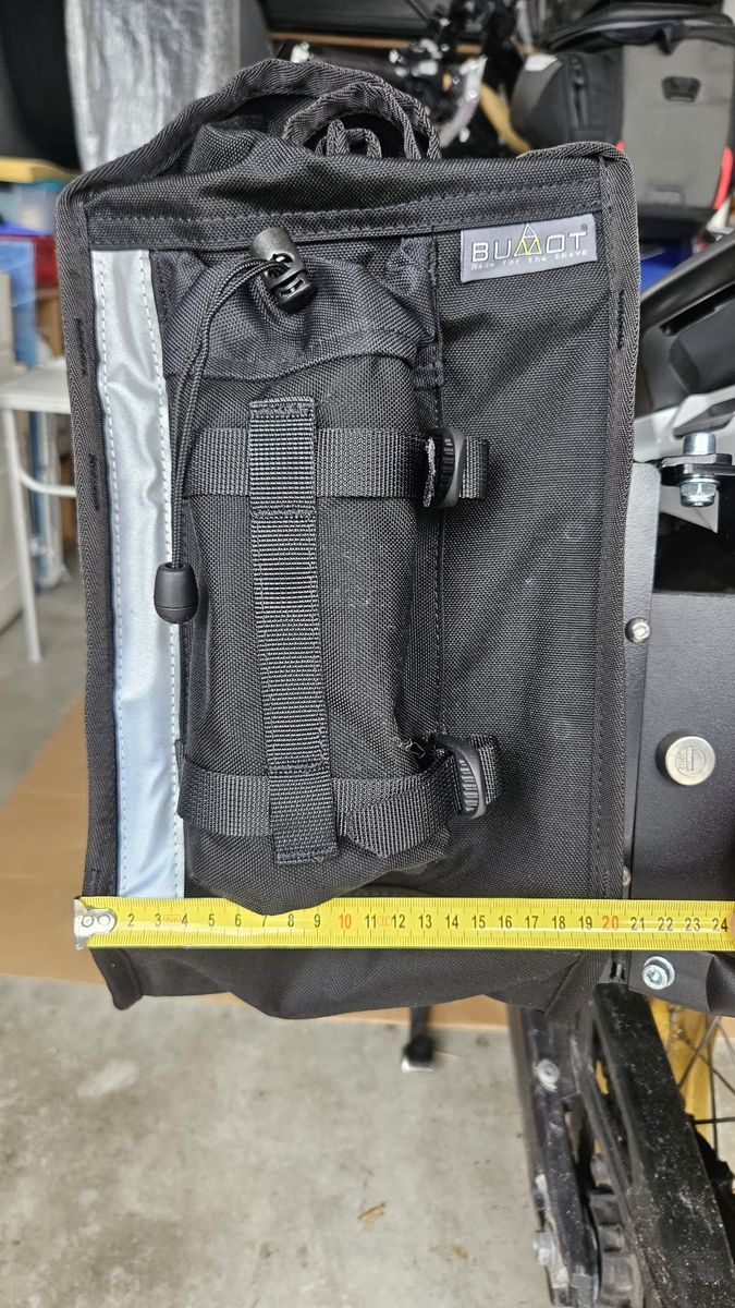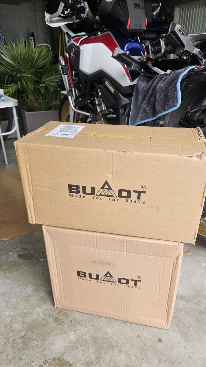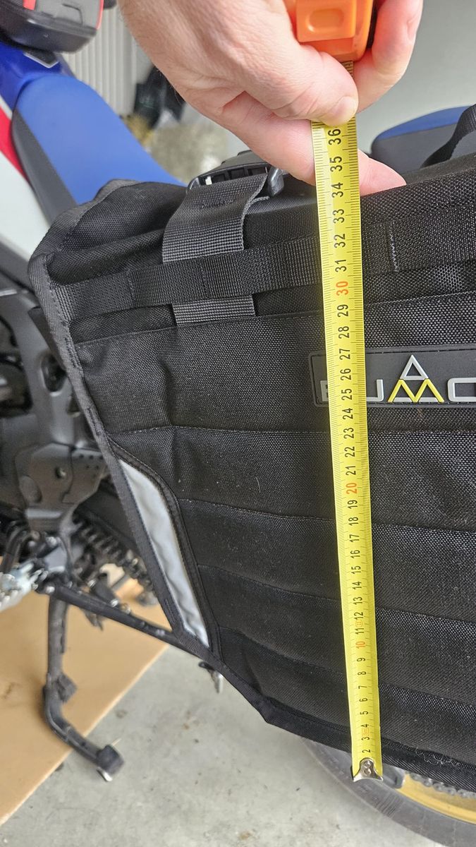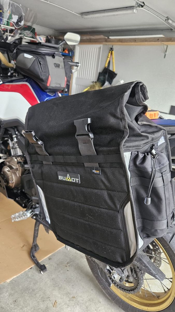 Hier meine CRF1000L von 2018. Hab nach langer Recherche das Bumot Xtremada Softgepäck montiert. Preislich unschlagbar, offset, daher symmetrisch, absperrbar und mit Toolbox. Sehr hochwertig verarbeitet, perfekte Passform, top Kundenservice und schnelle Reaktion. kann ich nur empfehlen. (Habe von Bumot auch die Motorschutzplatte). Die Taschen sind sehr flexibel und zur Not auch noch weiter nach oben "ausrollbar" um mehr Platz zu schaffen. Die 4 kleinen Taschen sind sehr praktisch für Getränke, Feuerlöscher, Reifenspray und Vieles mehr. Das Rack ist sehr massiv, jedoch muss man zur Befestigung schon ziemlich viel zerlegen. (Fussrasten, Sitzbank, Heckleuchte, usw...) Die Toolbox fällt kleiner aus als gedacht, also passen kein Schlauch oder Pannensprax rein. Vielleicht helfen diese Infos, dem ein oder anderen von euch weiter.