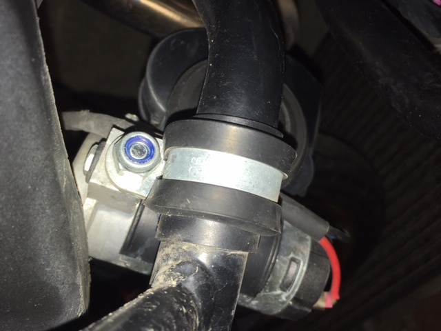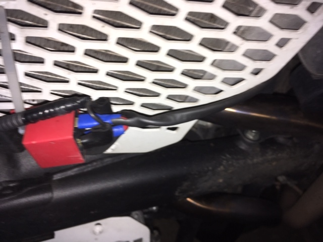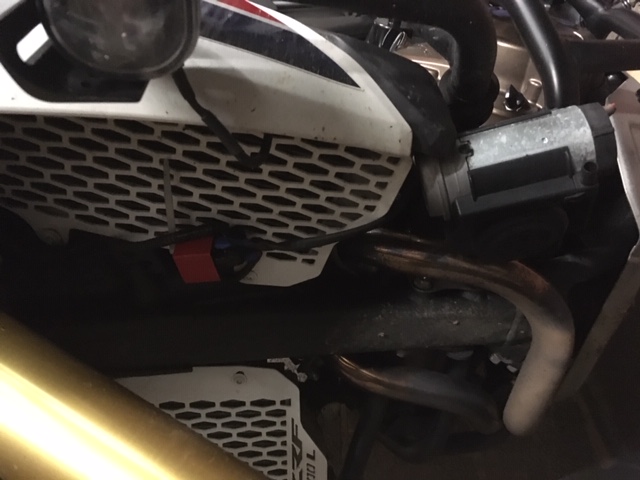 das Relais über die original Stromversorgung angeschlossen und am Lüftergitter befestigt. Die Hupe habe ich mit einem Schellenring (Gummigepolstert) an dem unteren Streben des Sturzbügels befestigt. Funzt einwandfrei. -
