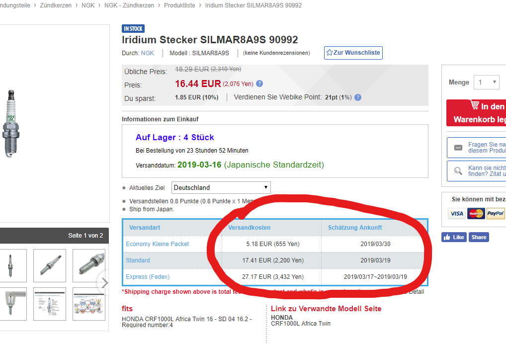 Bei Webike kosten die 16,44 + 1.94 Versand.Zeigt mir irgendwie mehr Versandkosten dort an.