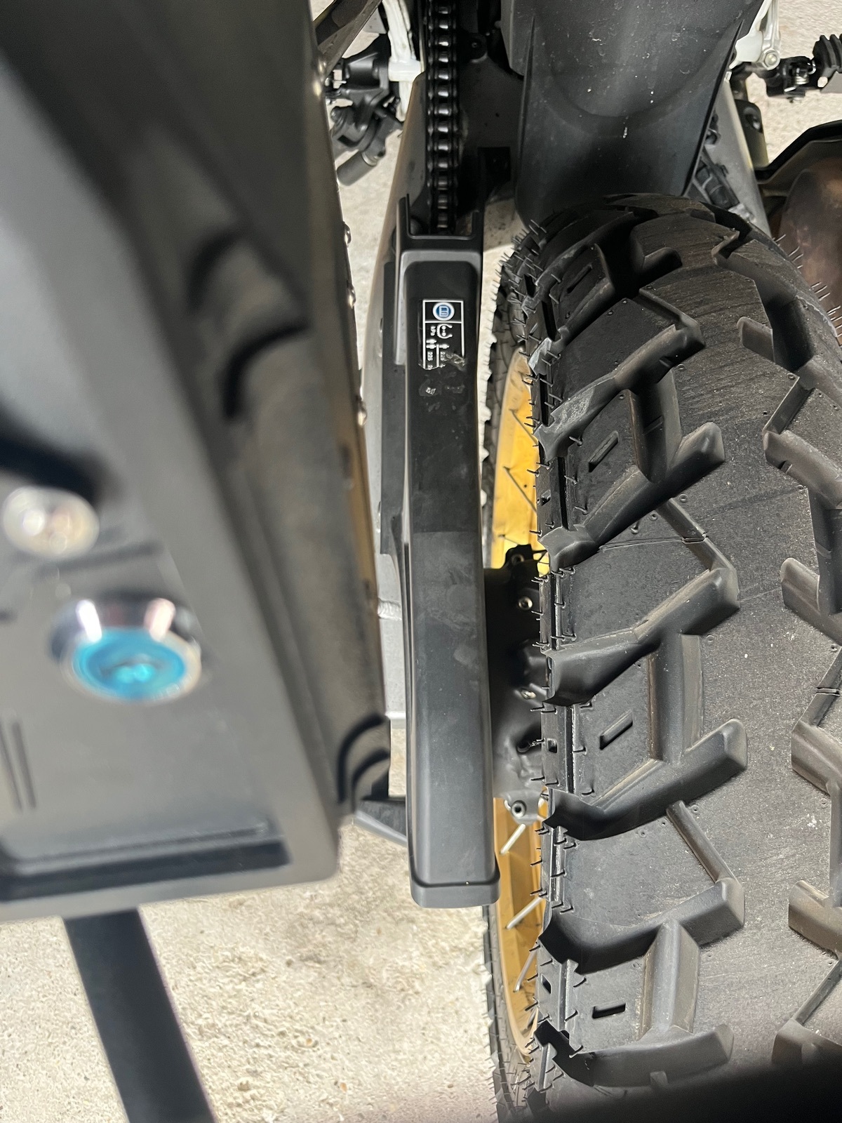 Wenn es voll eingefedert ist, berührt der Kettenschutz die Toolbox nicht?