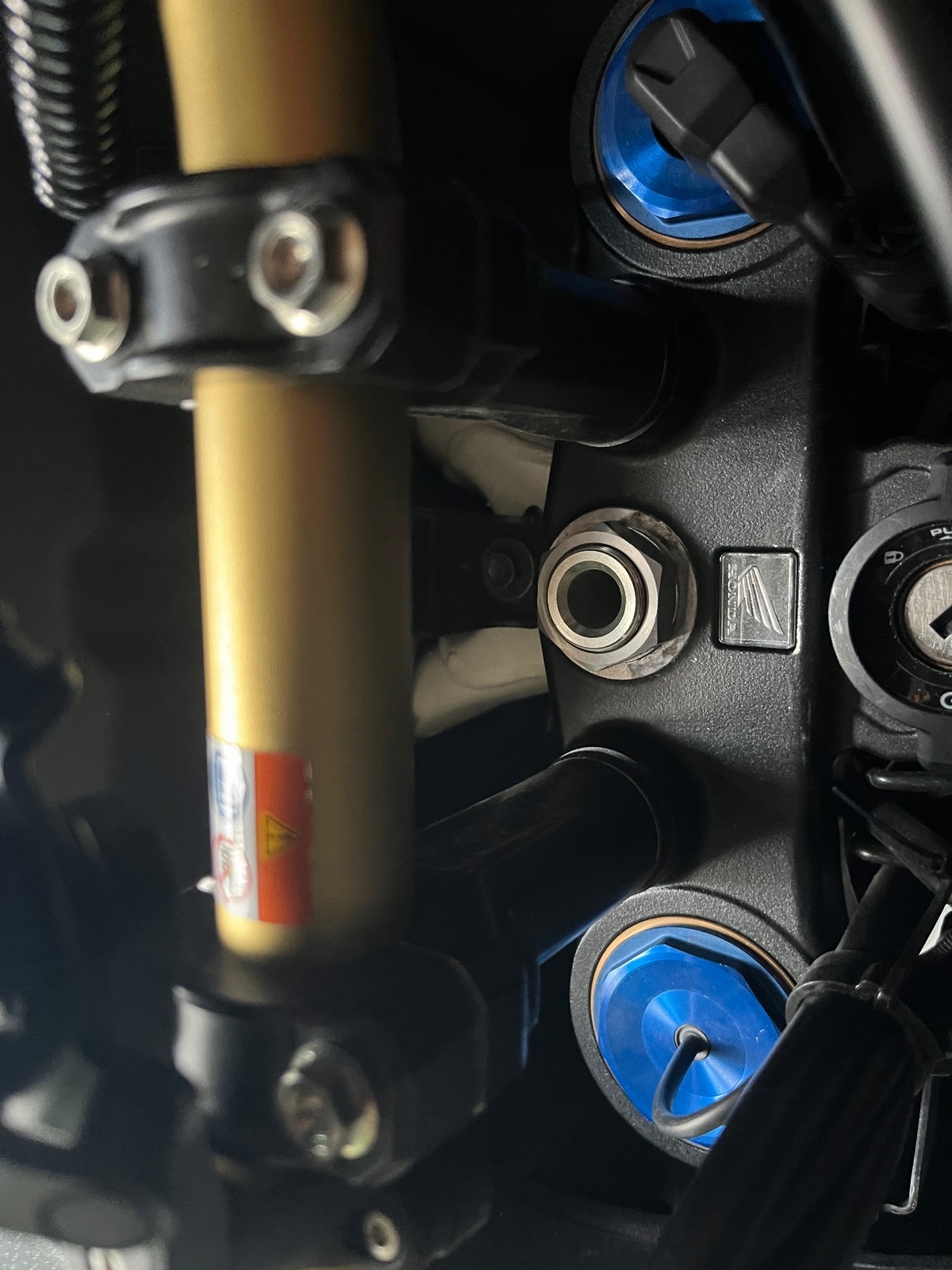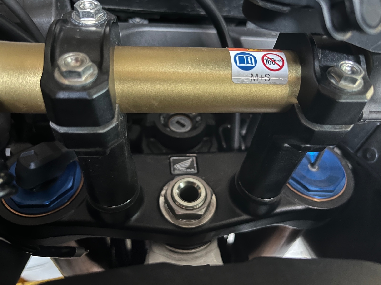 Bei genauerem hinsehen stellte ich fest, das die Halter des Lenkers auf der Gabelbrücke nicht parallel zueinander standen. Dadurch war der Lenker von rechts nach links ca. 10cm unterschiedlich.