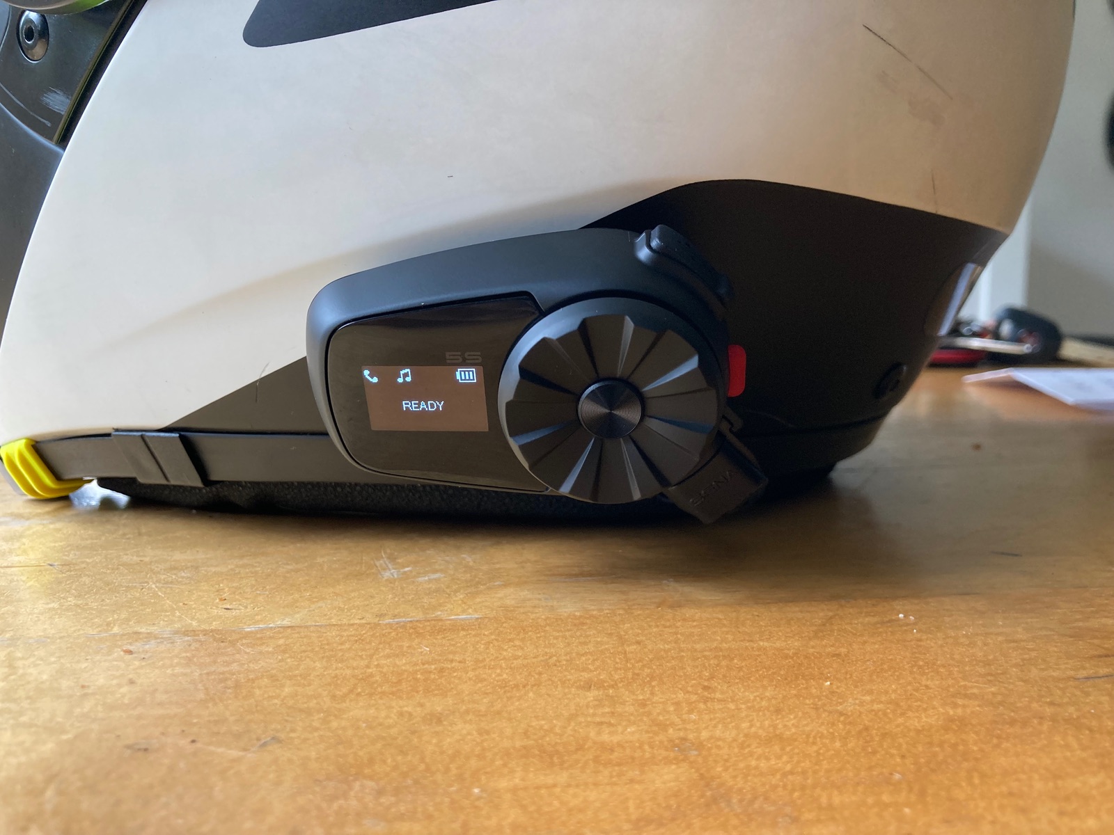 Es ist ein Sena 5S geworden, das gibt es im Moment bei FC Moto für 110 Euro, stolze 60 Euro unter der Sena-UVP. Schimpft sich "FC Moto Sonderedition", was man aber nur auf dem Karton und auf der Klemmbefestigung für den Helm sieht. Wer wie ich die Klebehalterung nimmt, sieht nichts.