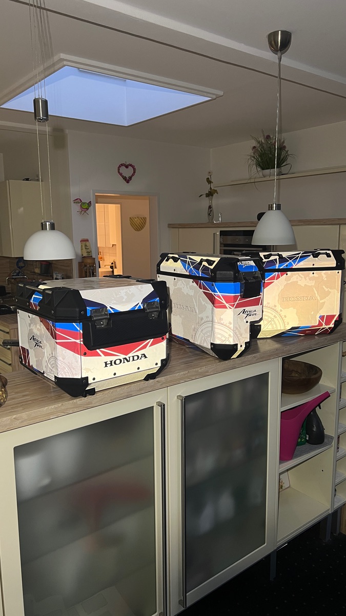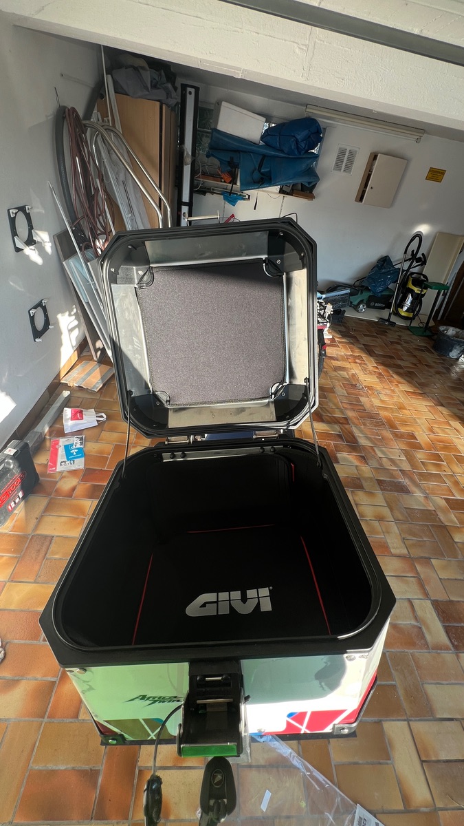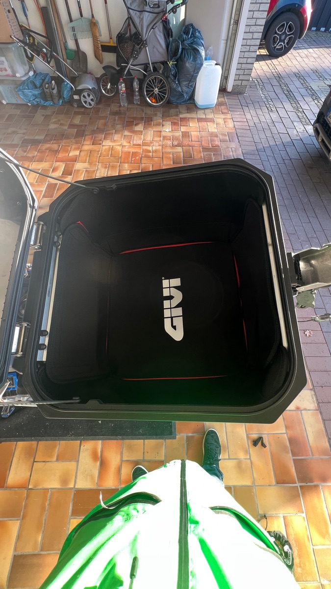 Ich habe schon lange nach einer weichen Innenverkleidung für das Alu Topcase und die Alu Seitenkoffer gesucht und habe mir die Innenverkleidungen von Givi für den Trekker Outback gekauft. Für die beiden Seitenkoffer (37l und 34l) habe ich die Innenverkleidungen für den 37l Seitenkoffer gekauft und auch dieser passt erstaunlich gut, wenn man ihn etwas formt. ![]()