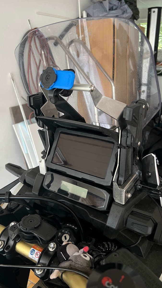 Ich hab mir reflektierende Koffervinylaufkleber bestellt und die Tage angebracht und eine neue QuadLock-Smartphonehalterung mit einem Touratech-Halter, weil mein TFT Bildschirm bei Kälte nicht funktioniert und Apple Carplay somit auch nicht.